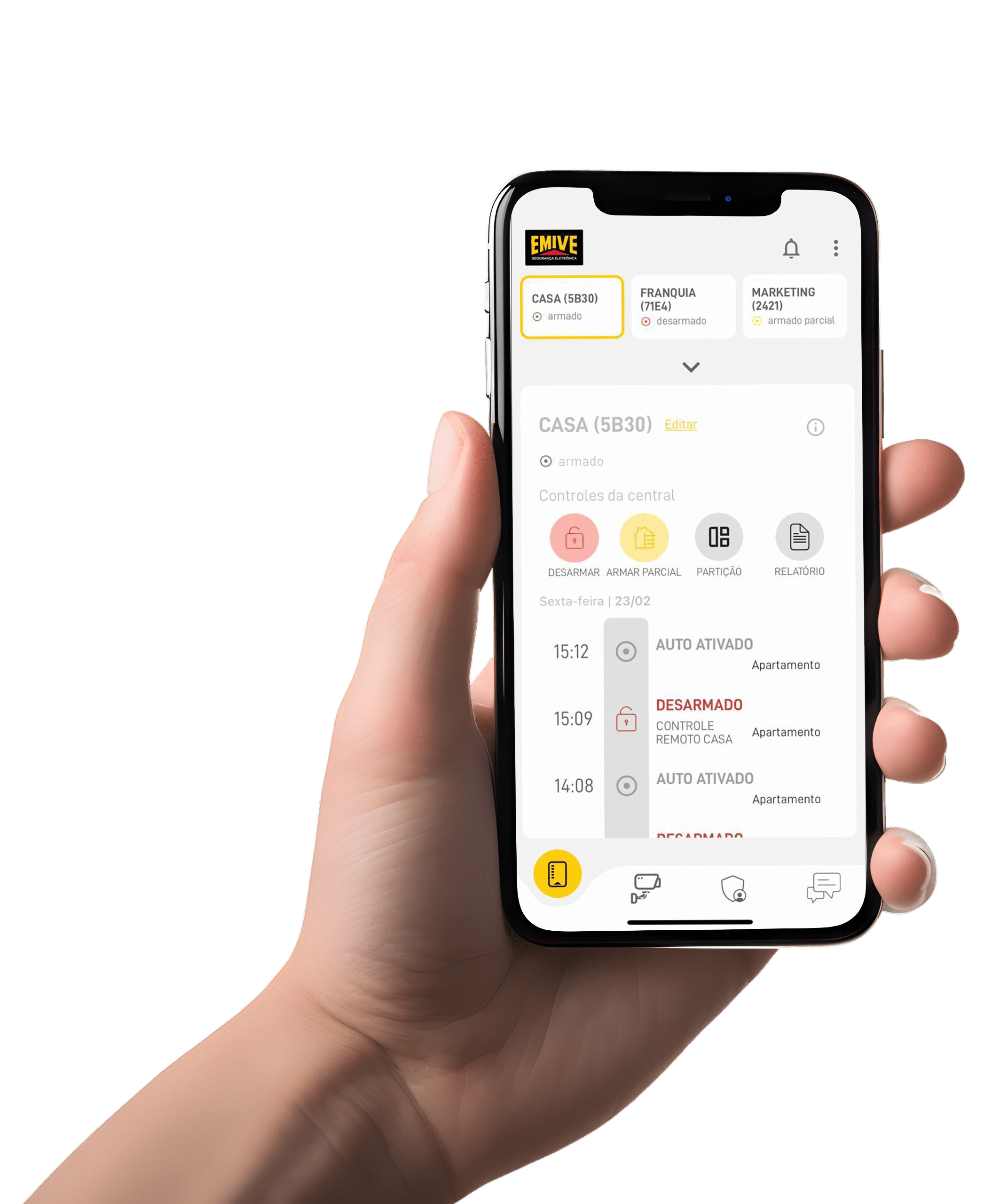Portabilidade, nanotecnologia e praticidade. O Sistema Smart Emive foi desenvolvido para promover a máxima segurança com o mínimo de impacto de instalação. Sistema sem fio, com sensores, câmera de alta definição, central de alarme, botão de pânico, entre outras características exclusivas. Tudo controlado diretamente do seu celular, por meio do Super App, com o qual você pode monitorar sua casa ou empresa 24h.